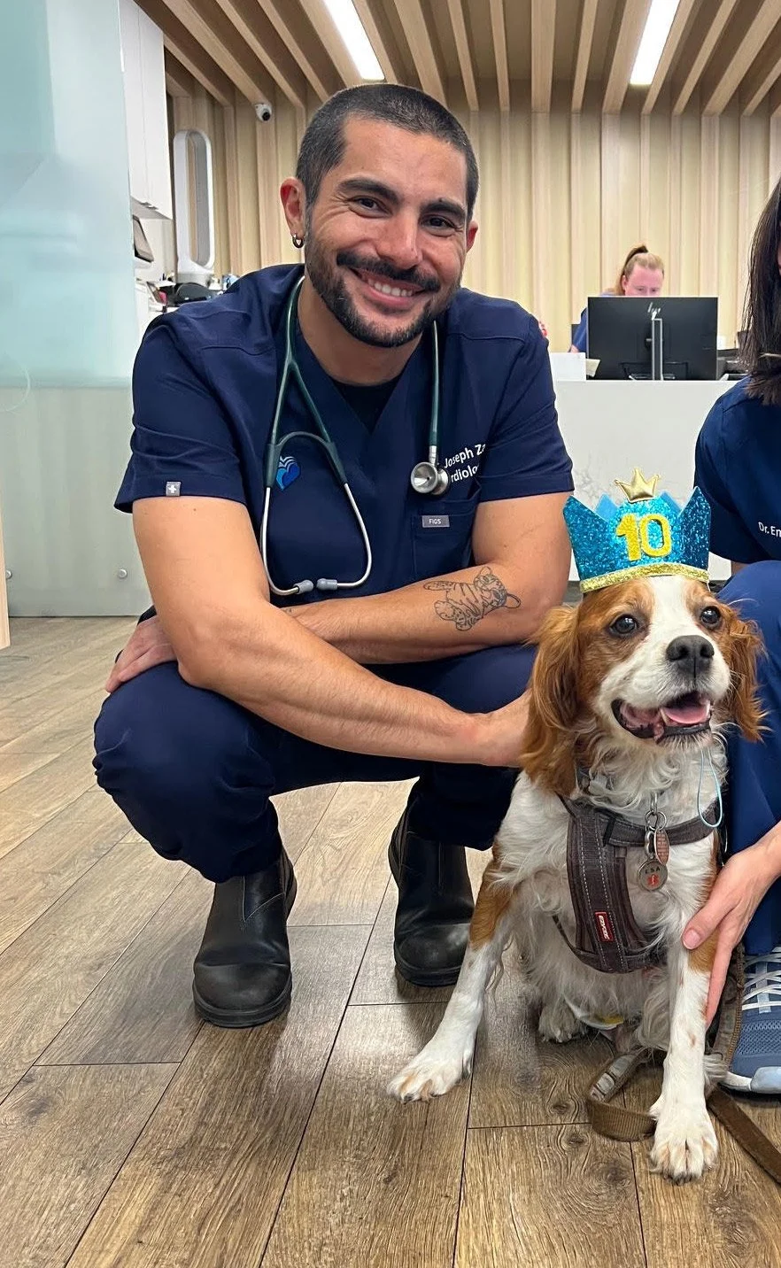 Dr. Joseph Zarin grew up in Los Angeles, CA and attended UC Santa Barbara to earn his bachelor’s degree in Molecular, Cellular, and Developmental Biology. He attended veterinary school at UC Davis where he earned his doctorate in veterinary medicine. He completed a small animal rotating internship at the University of Georgia, followed by an emergency and critical care specialty internship at Massachusetts Veterinary Referral Hospital. Dr. Zarin then completed a three-year cardiology residency at Angell Animal Medical Center and became a board-certified cardiologist. He finally returned home to Los Angeles to be closer to family and friends. Dr. Zarin appreciates all aspects of cardiology and finds particular fulfillment in helping patients return home after overcoming an episode of congestive heart failure.